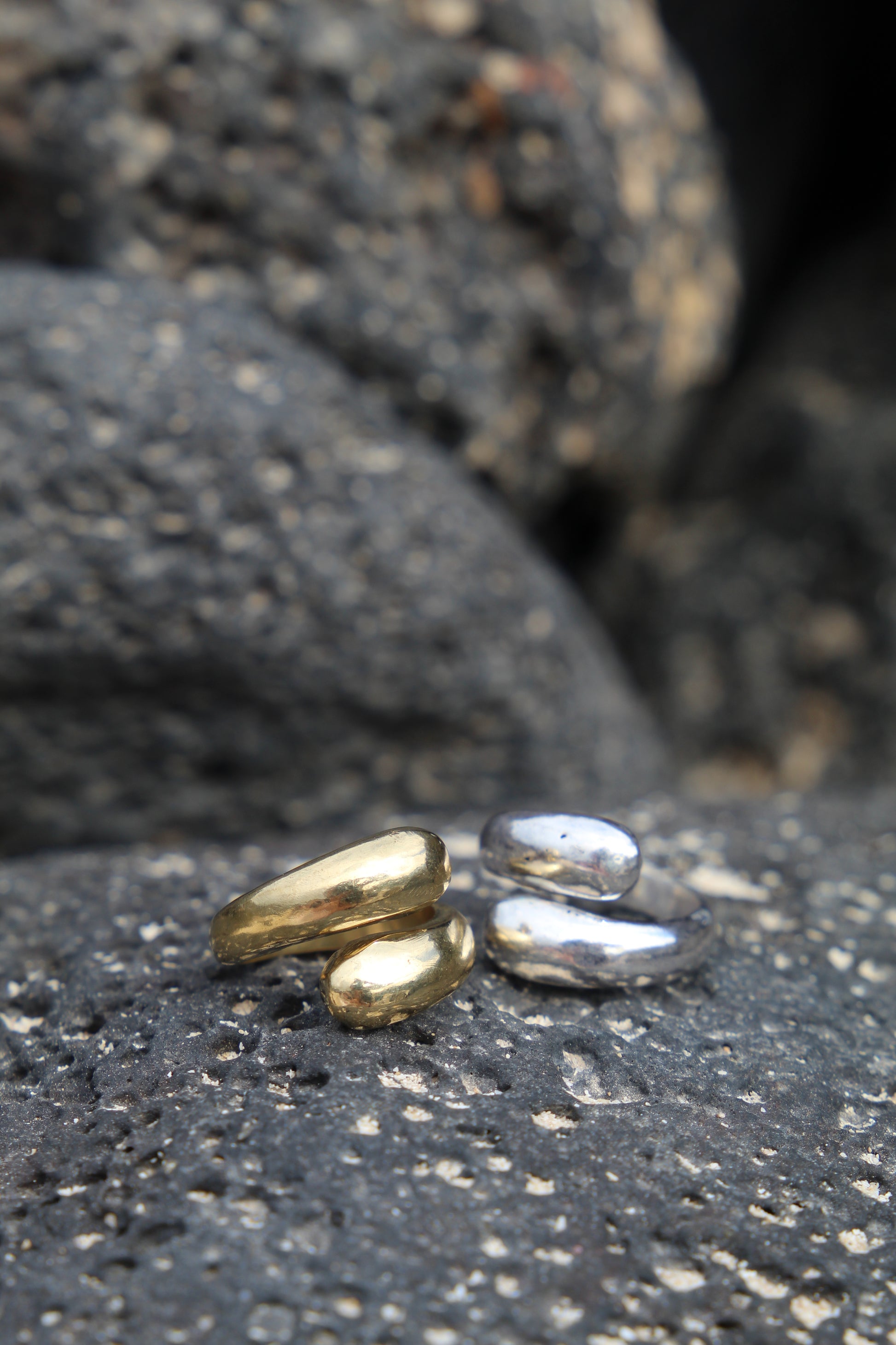 The Ananta ring is a statement of fluid strength, designed to wrap elegantly around the finger in a bold, seamless embrace. Its open, adjustable form allows for a perfect fit while maintaining a striking, modern aesthetic. Available in both brass and steel.