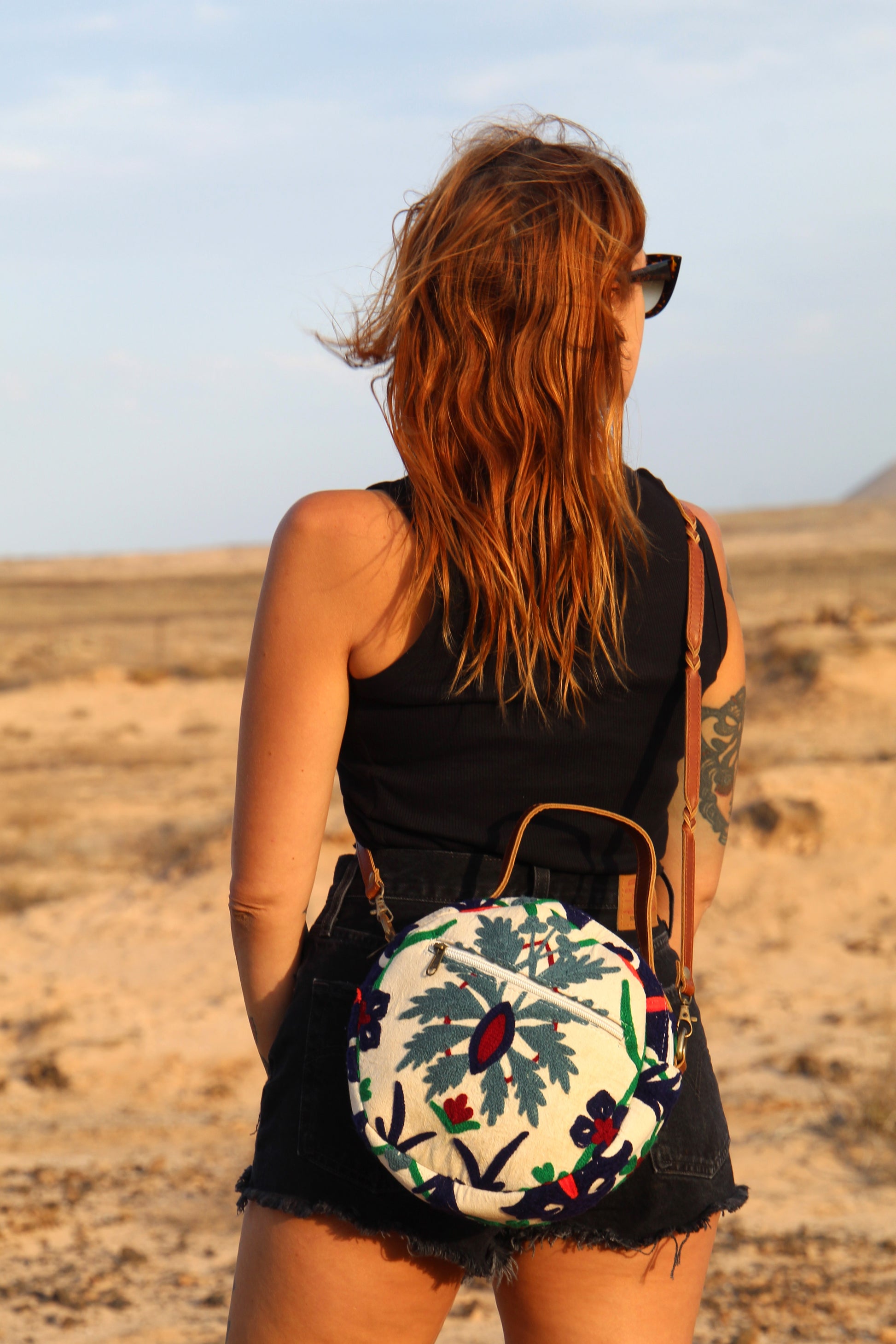 Celebrate the vibrant artistry of embroidery with this elegant round, rigid bag, designed to seamlessly blend cultural charm with modern practicality.